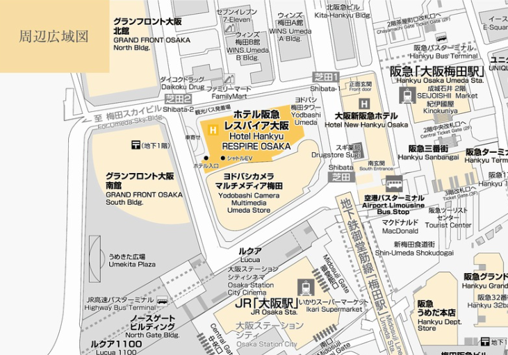 ■ JR「大阪駅」(うめきた地下口)から徒歩約6分 ■ 阪急「大阪梅田駅」中央改札口から徒歩約5分 ■ 阪神「大阪梅田駅」百貨店口から徒歩約10分 ■ 大阪メトロ御堂筋線「梅田駅」北改札口から徒歩約5分 ■ 新幹線「新大阪駅」から、JR京都線で「大阪駅」まで約7分 ■ 関西国際空港から、JR関空特急「はるか」で「大阪駅」まで約47分 |
